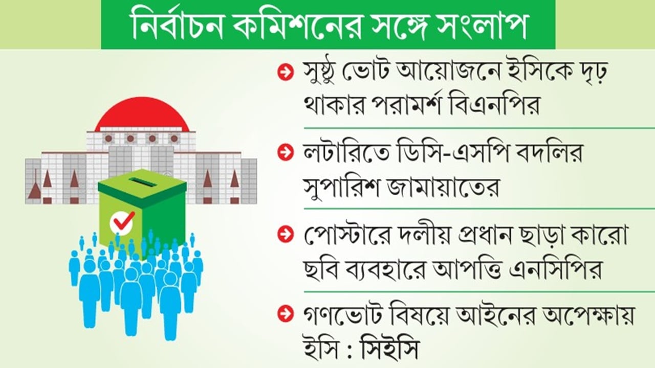 ভিডিও বানাতে গিয়ে অগ্নিদগ্ধ হয়ে হাসপাতালে কনটেন্ট ক্রিয়েটর শিশুকে পিটিয়ে হত্যার অভিযোগে সৎ মা আটক- পলাতক বাবা লুট হওয়া জামায়াতের ৯ মোটরসাইকেল বিএনপি নেতার বাড়ি থেকে উদ্ধার নিষিদ্ধ ঘোষিত ছাত্রলীগের নতুন কমিটি ঘোষণা রাজধানীর সচিবালয় মেট্রোরেল স্টেশনে ট্রেনের ছাদে দুই ব্যক্তি কর্মস্থলে যাওয়ার পথে সড়ক দুর্ঘটনায় নিহত সিনিয়র সাংবাদিক জহির এনসিপির প্রার্থী তালিকা চূড়ান্ত হতে আর ‘দুই দিন’ সময় লাগতে পারে চাঁপাইনবাবগঞ্জে বেগম জিয়ার রোগমুক্তি কামনায় যুব দলের দোয়া মাহফিল “স্বেচ্ছায় বিবাহ, তবুও  অপহরণ মামলা-নিরাপত্তা চেয়ে  ইসরাত খাতুন”র সংবাদ সম্মেলন ৮ দল আমাদের আর ৮ দল থাকছে না- আরও অনেক দল জোট করার আবেদন করছে- গোলাম পরওয়ার