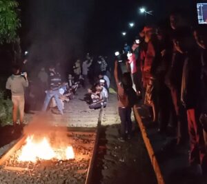 ৪৭তম বিসিএস লিখিত পরীক্ষার সময় পিছিয়ে দেওয়ার দাবিতে রাজশাহীতে রেলপথ অবরোধ। ছবি- সৈয়দ মাসুদ
