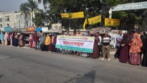 রাজশাহীর পুঠিয়া উপজেলার অষ্টম শ্রেণির শিক্ষার্থী সামিহা (১৪) অপহরণের এক মাস হতে চললেও এখনও তার কোনো খোঁজ মিলছে না। দীর্ঘ এই অপেক্ষা ও পুলিশের উদাসীনতায় ক্ষোভ প্রকাশ করে শনিবার বেলা ১১টার দিকে পুঠিয়া উপজেলা পরিষদ গেটের সামনে মানববন্ধন করেন ভুক্তভোগী পরিবার, সহপাঠী ও এলাকাবাসী।মানববন্ধনে বক্তারা অভিযোগ করেন, ২৬ অক্টোবর সামিহাকে অপহরণের পর পরদিনই মামলা করা হলেও পুলিশ এখনো কোনো দৃশ্যমান অগ্রগতি দেখাতে পারেনি। পরিবার বারবার থানায় ও সংশ্লিষ্ট কর্তৃপক্ষের কাছে গেলেও প্রতিবারই আশ্বাস ছাড়া কিছুই পাচ্ছে না। মানববন্ধনে সামিহার বিদ্যালয়ের শিক্ষার্থী, শিক্ষক, স্থানীয় জনসাধারণ ও বিভিন্ন সামাজিক সংগঠনের সদস্যরা অংশ নেন।