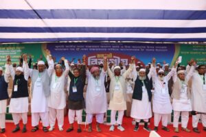 আগামীর সংসদ হবে সন্ত্রাস ও চাঁদাবাজমুক্ত কোরআনের সংসদ: অধ্যাপক মুজিবুর রহমান। জুলাই জাতীয় সনদ বাস্তবায়ন আদেশ জারি ও উক্ত আদেশের উপর গণভোট আয়োজনসহ ৫ দফা দাবিতে ৮ দলের উদ্যোগে ঐতিহাসিক মাদ্রাসা মাঠে রাজশাহী বিভাগীয় সমাবেশ অনুষ্ঠিত হয়েছে। রোববার (৩০ নভেম্বর) দুপুর ২.০০ টা থেকে ৪.০০ টা পর্যন্ত সমাবেশে বক্তব্য রাখেন ৮ দলের কেন্দ্রীয় নেতৃবৃন্দ। বাংলাদেশ জামায়াতে ইসলামীর সিনিয়র নায়েবে আমির ও সাবেক এমপি অধ্যাপক মুজিবুর রহমান বলেছেন, আগামীর সংসদ হবে চাঁদাবাজ ও সন্ত্রাসমুক্ত সংসদ। চাঁদাবাজদের প্রতিহত করবো ইনশাআল্লাহ। অতীতে যারা চাঁদাবাজি করেছে, তাদের আর খাওয়া নাই। আগামীর সংসদ হবে কুরআনের সংসদ। আগামীতে সচিবালয় চলবে সংসদ চলবে বিচারালয় চলবে কুরআন দিয়ে। সবকিছু চলবে কুরআন দিয়ে। সমাবেশে জামায়াতে ইসলামীর সেক্রেটারি জেনারেল অধ্যাপক মিয়া গোলাম পরওয়ার বলেছেন, ৮ দলের জোট নতুন জাগরণ তৈরি হয়েছে। অবশ্যই জাতীয় নির্বাচনের আগে গণভোট দিতে হবে। সরকার একইদিনে গণভোটের সিদ্ধান্ত কারো কুপরামর্শে করেছে। তিনি বলেন, মানুষের মনে আশা সঞ্চার হয়েছে নতুন বাংলাদেশ ইসলামের বাংলাদেশ হবে। এবারের সংগ্রাম চাঁদাবাজ, দুর্নীতি ও সন্ত্রাসের বিরুদ্ধে সংগ্রাম। আমাদের ৮ দলের বার্তা জাগরণের বার্তা নিয়ে এসেছি। পরিবর্তনের বার্তা গ্রামে গঞ্জে পৌঁছে দিতে হবে। আমাদের এই ৮ দল আর ৮ দল থাকছে না, আমাদের সাথে আরও অনেক দল আসার আবেদন করছে। সবার প্রত্যাশা একটা নতুন বাংলাদেশ চাই।