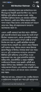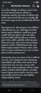 সামাজিক যোগাযোগমাধ্যম ফেসবুকে দেওয়া এক দীর্ঘ স্ট্যাটাস।