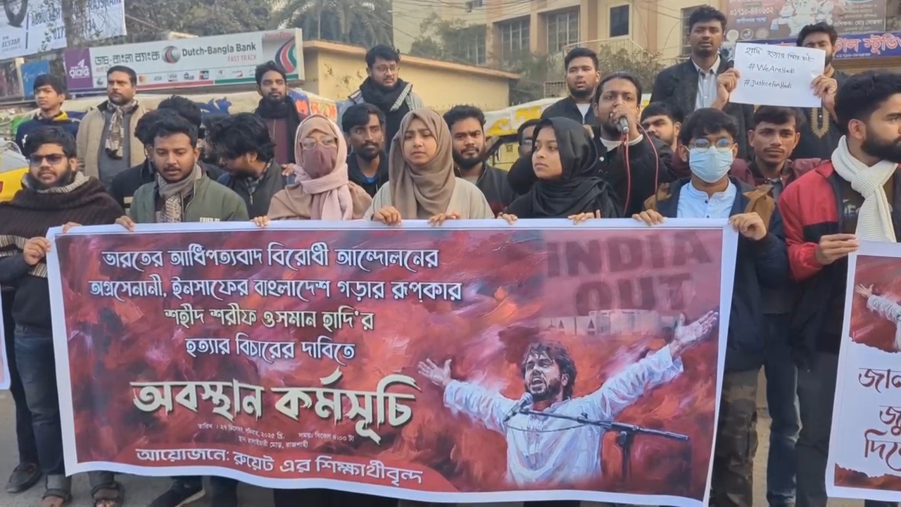 হাদি হত্যার বিচার না হলে রাজপথ উত্তাল হবে-রাজশাহীতে শিক্ষার্থীদের অবস্থান কর্মসূচি