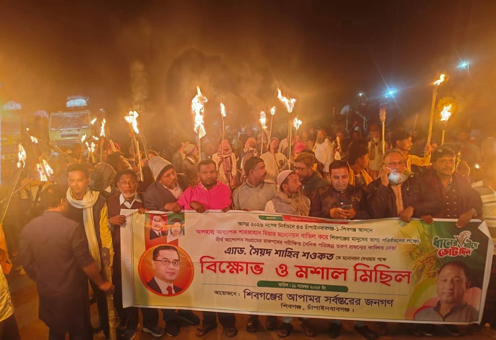 বিএনপি প্রার্থী পরিবর্তনের দাবিতে শিবগঞ্জে মশালমিছিল ও সড়ক অবরোধ