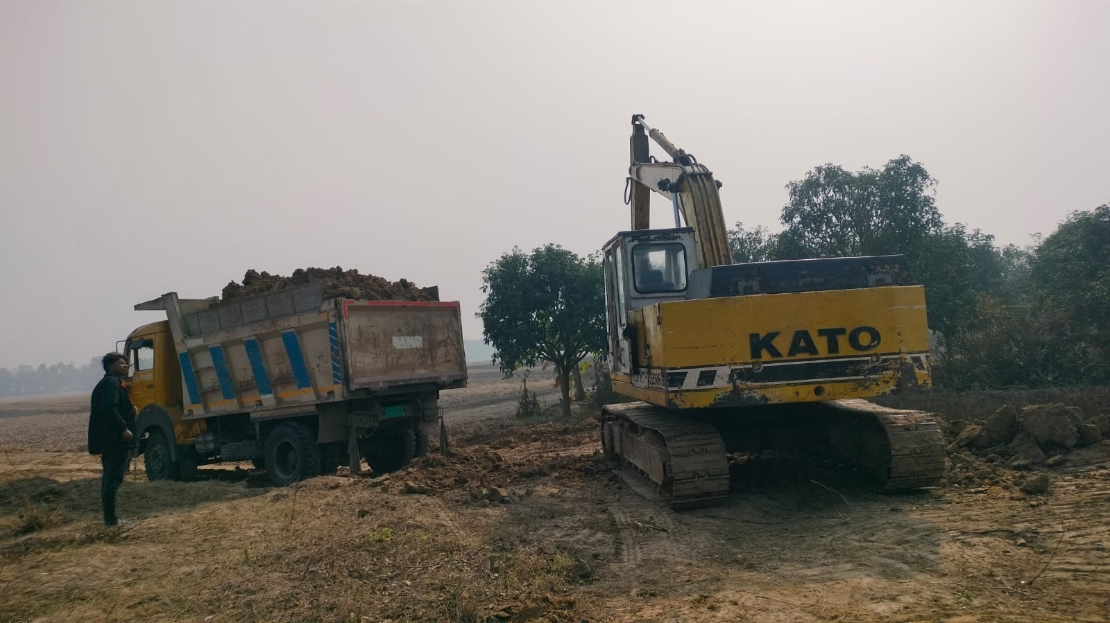 মাটিভর্তি ট্টাক্টরসহ এক্সাভেটর মেশিন ফেলে পালালো ভূমিদস্যুরা