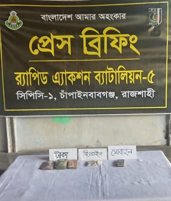 চাঁপাইনবাবগঞ্জে র্যাবের দু’টি অভিযানে হেরোইনসহ তিন কারবারী গ্রেফতার