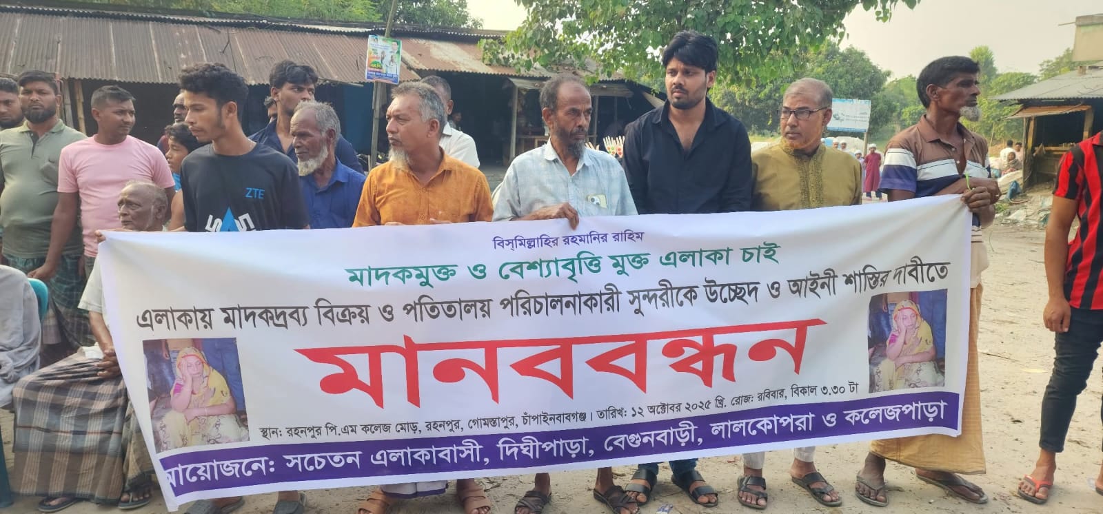 রহনপুরে অসামাজিক কার্যকলাপ বন্ধের দাবিতে মানববন্ধন