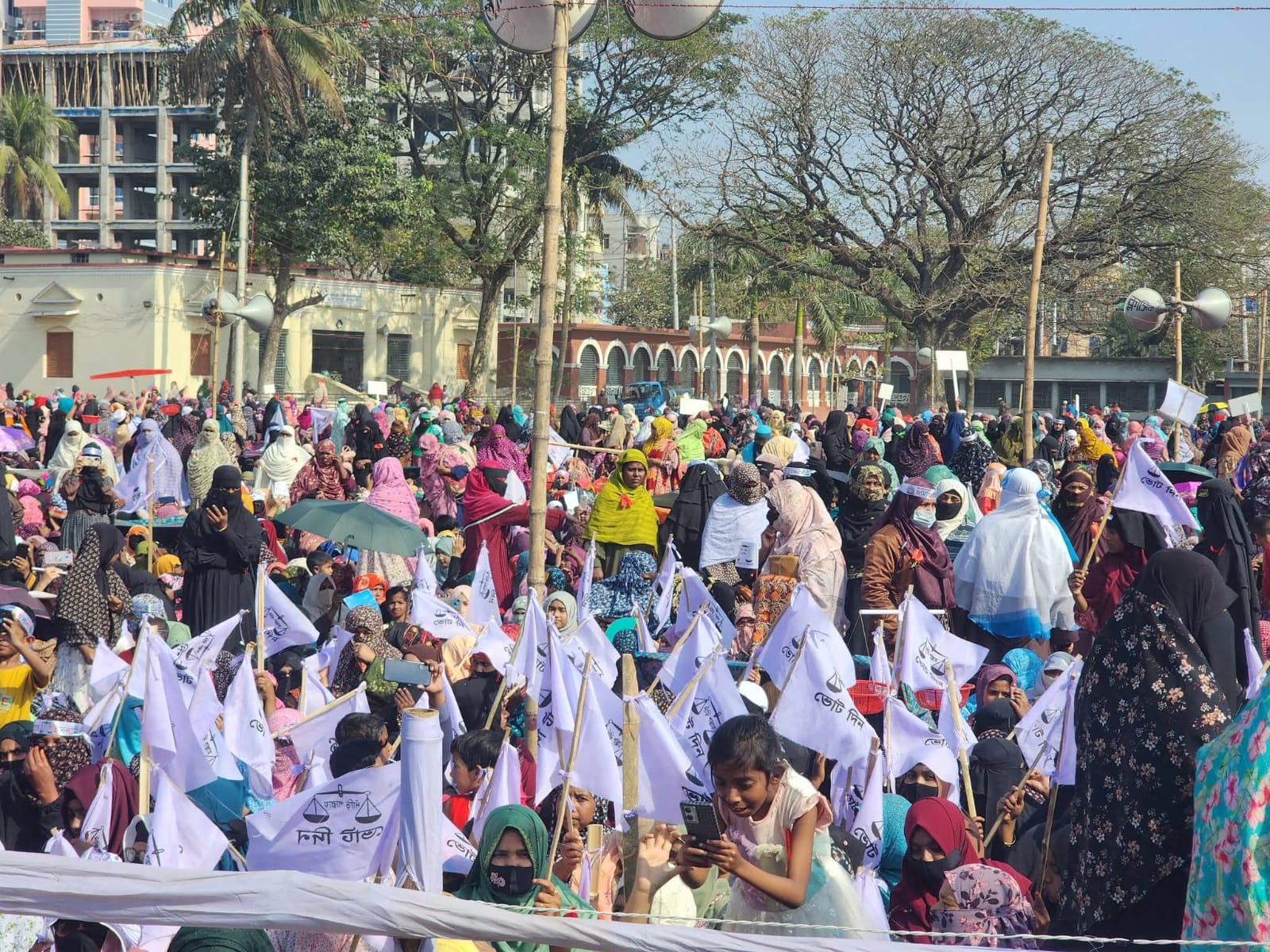 রাজশাহীর ঐতিহাসিক মাদ্রাসা ময়দানে আজ বৃহস্পতিবার (৫ ফেব্রুয়ারি) ইতিহাসে প্রথমবারের মতো নারী–পুরুষের সমন্বয়ে বাংলাদেশ জামায়াতে ইসলামীর বিশাল মহাসমাবেশ অনুষ্ঠিত হচ্ছে।