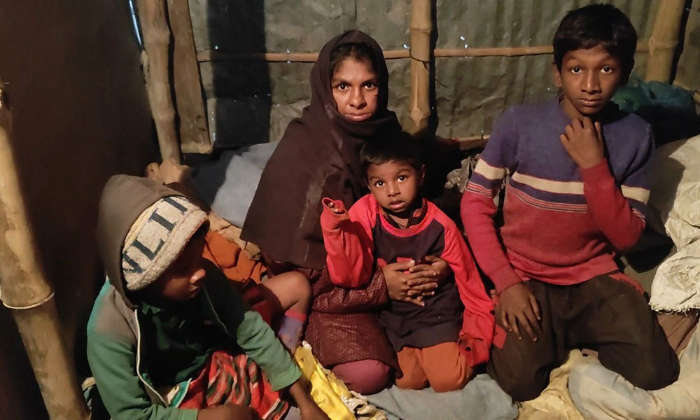 কনকনে শীতে এক কম্বলেই রাত কাটে ৩ সন্তানের, বসে থাকেন মা