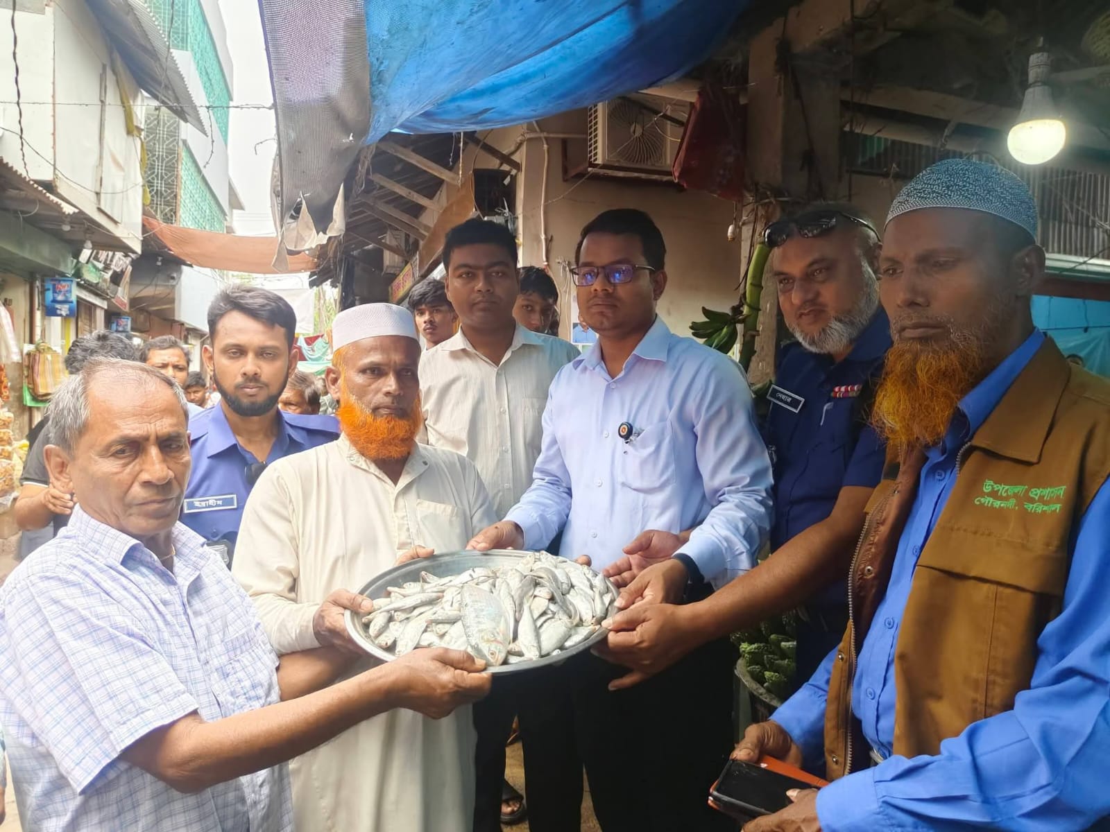 গৌরনদীতে জাটকা বিরোধী অভিযানে বিপুল জব্দ, এতিমখানায় বিতরণ