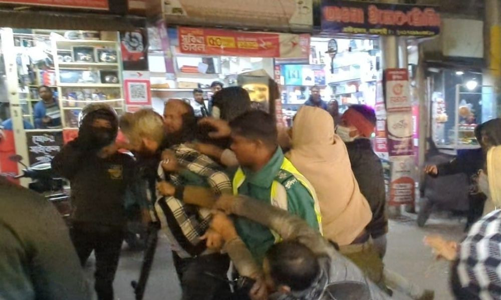 নিষিদ্ধ ঘোষিত ছাত্রলীগ নেতাকে মারধরের পর পুলিশে সোপর্দ