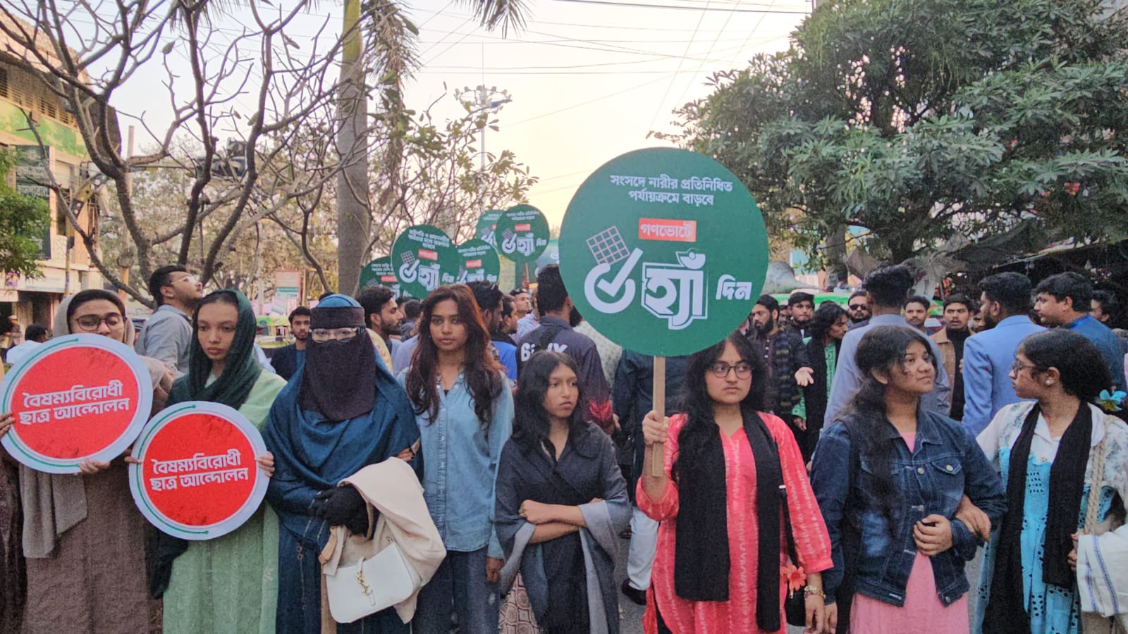 রাজশাহীতে বৈষম্যবিরোধী ছাত্র আন্দোলনের ‘হ্যাঁ ভোট’ ক্যাম্পিং