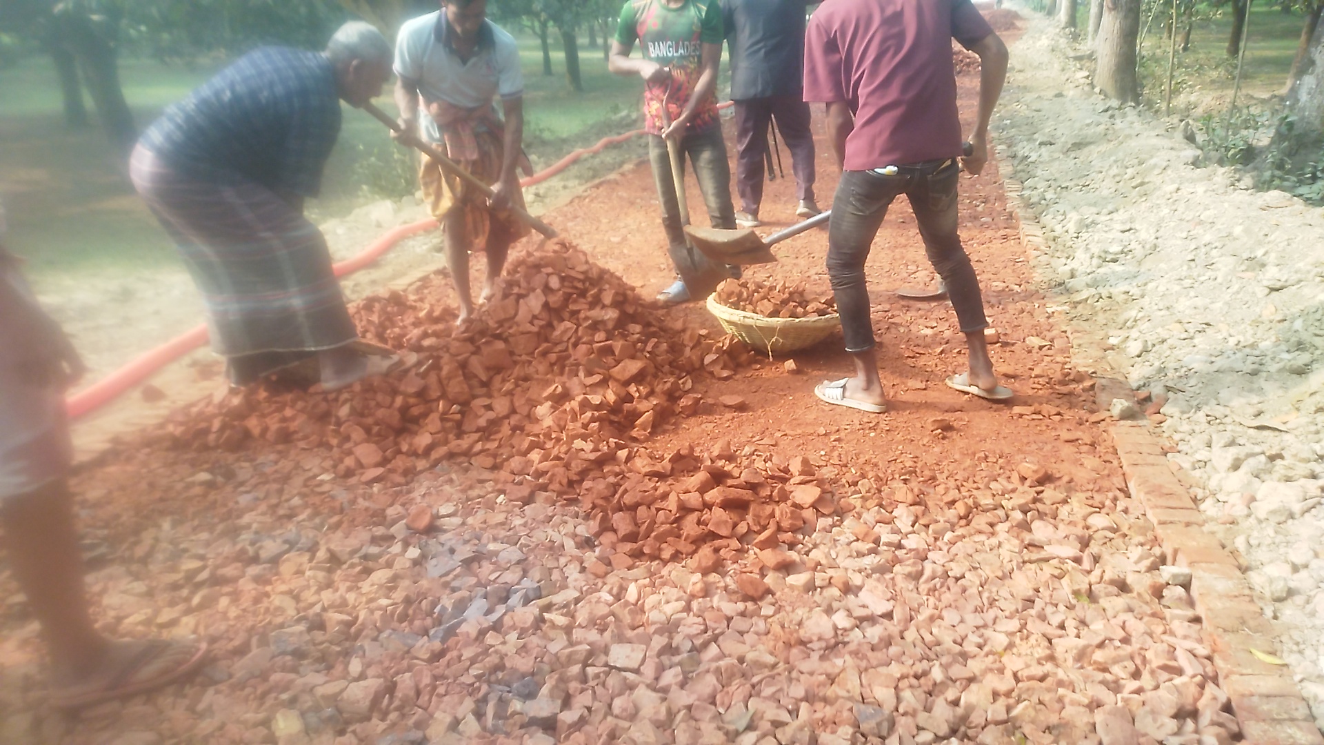 শিবগঞ্জেনিম্নমানের ইটে সড়ক নির্মাণের অভিযোগ
