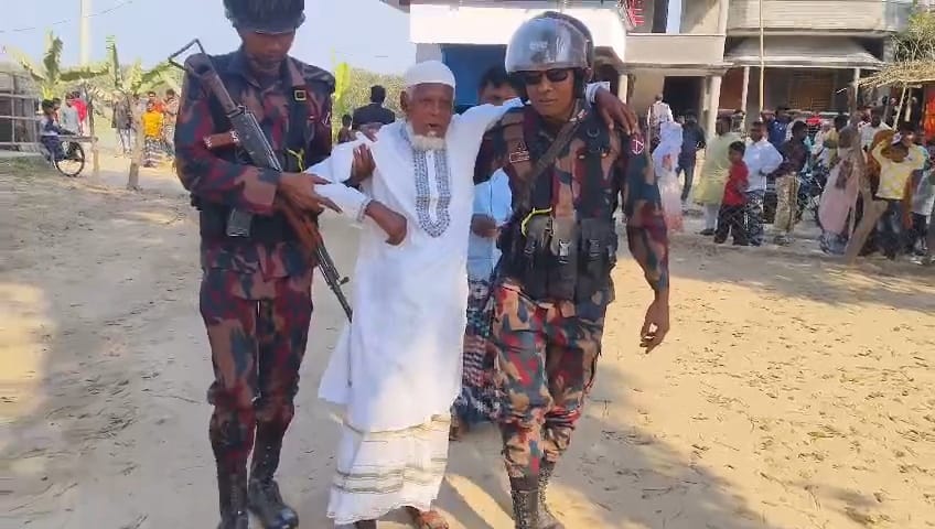 বিজিবির সহায়তায় ভোট দিলেন ৮০ বছরের বৃদ্ধ