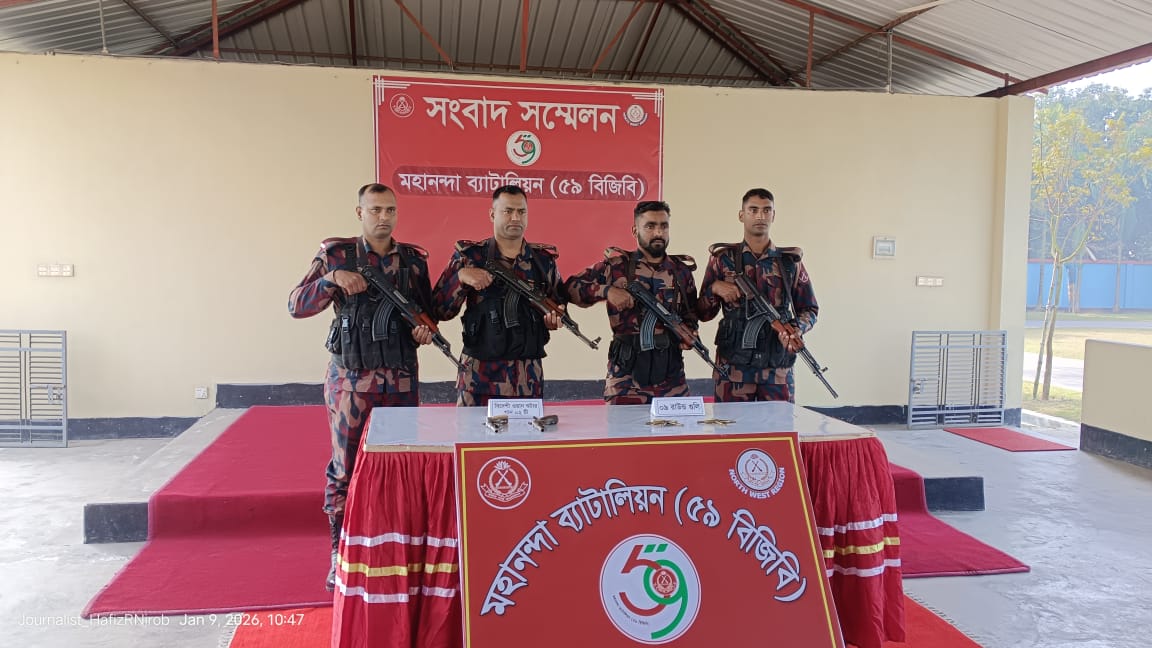 শিবগঞ্জ সীমান্তে বিজিবির অভিযানে ২টি বিদেশি অস্ত্রসহ গুলি উদ্ধার